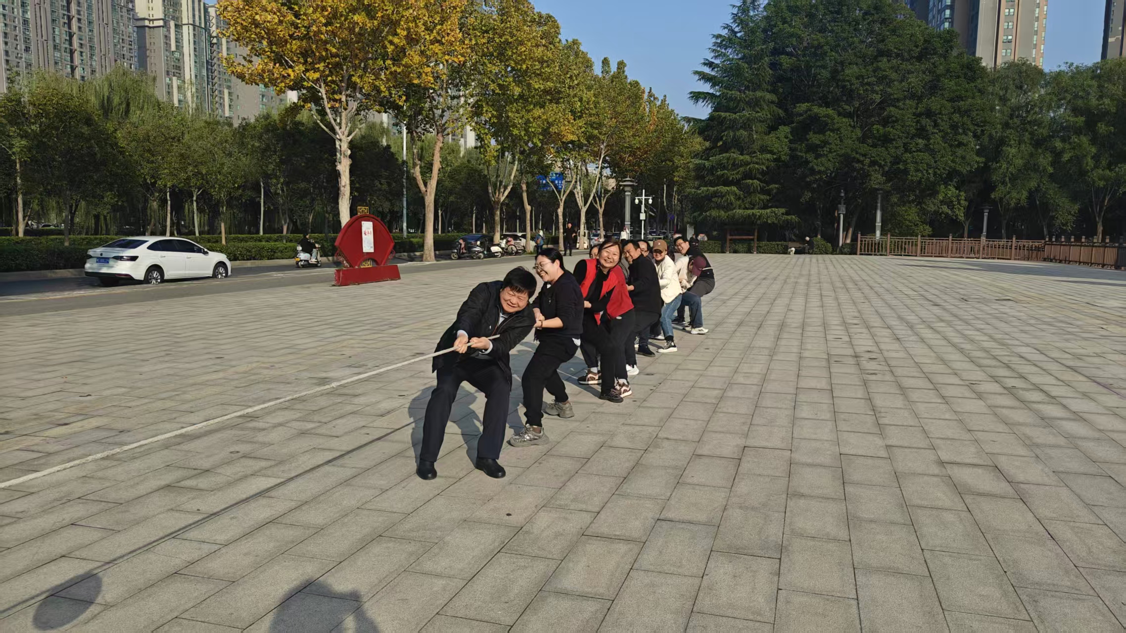 活动现场,干部职工先通过跳绳、拔河、踢毽子、打羽毛球等活动,进行健步走之前的热身。随后,大家迈着轻松的步伐沿乐道前行,沿途绿树成荫、秋景宜人。行走过程中,大家相互鼓劲、彼此照应,既享受着户外运动的活力与乐趣,又展现出团结协作的良好风貌。